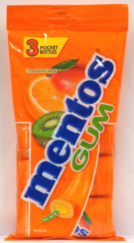 Mentos Sugar Free Chewing Gum, Tropical, 3 15-piece Bottles (Pack of 4) Total 180 Pieces Review